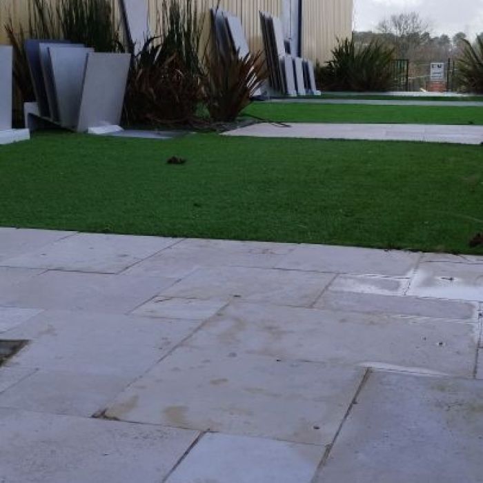 Gazon synthétique en Stock du 45mm, 32mm, 30mm d'épaisseur, vert beige pour un effet très naturel. Carrelage antidérapant sur plots ou en 10mm à coller.